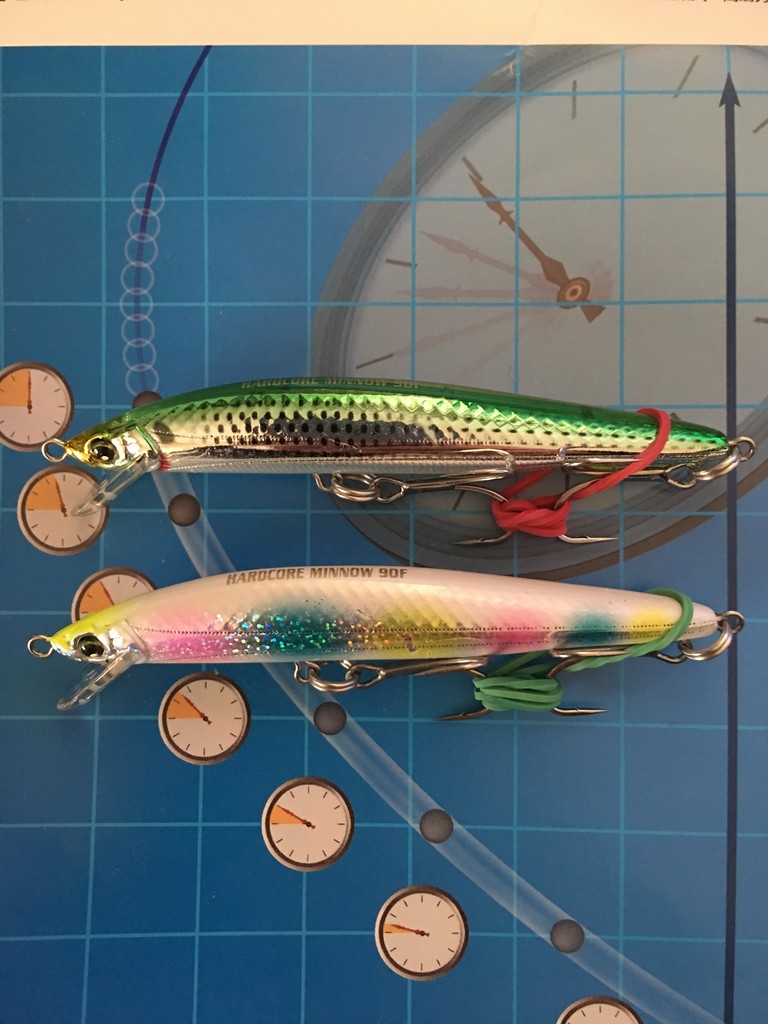 ルアー:TKLM90、K2F122、Mクワイエット、ハードコアミノー90/110F