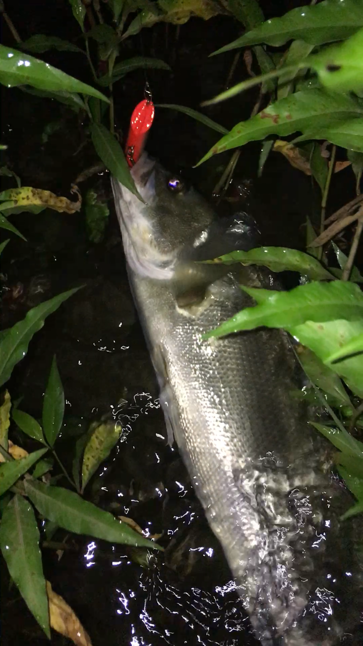 中洲の流れに対して上流側の頭に、いつも小さなシーバスが付いているのはわかっているため、ドリフトさせながらそのあたりを通過させるとガツンとアタリますが、残念ながら乗りません。