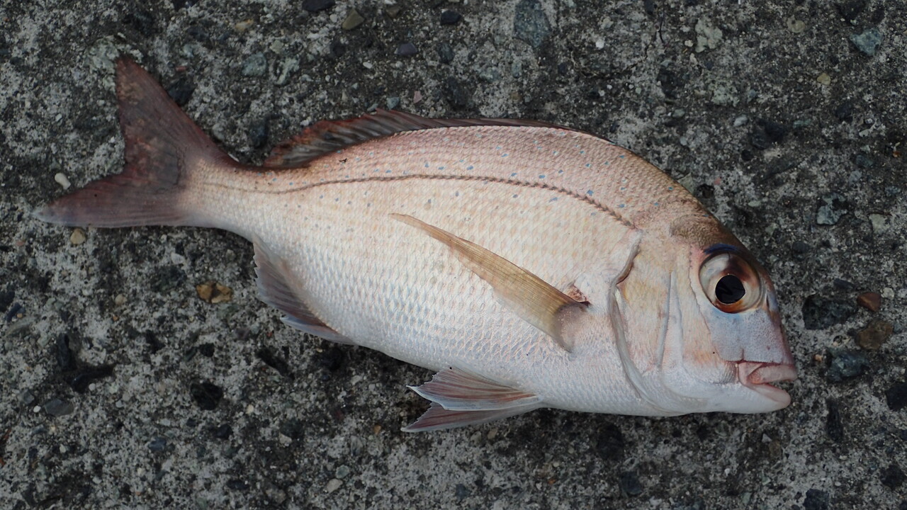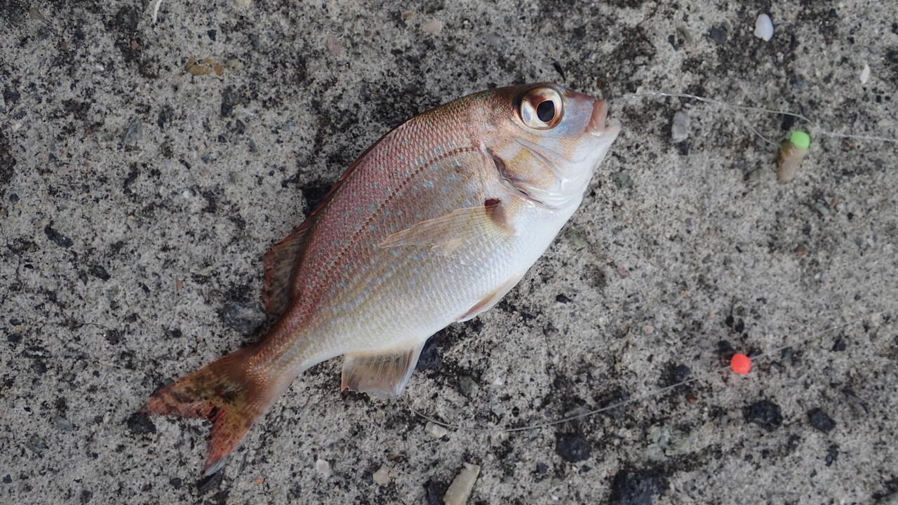 もう少し大きければ嬉しい真鯛もこのサイズだとフグやスズメダイなどの餌取りと変わりません。