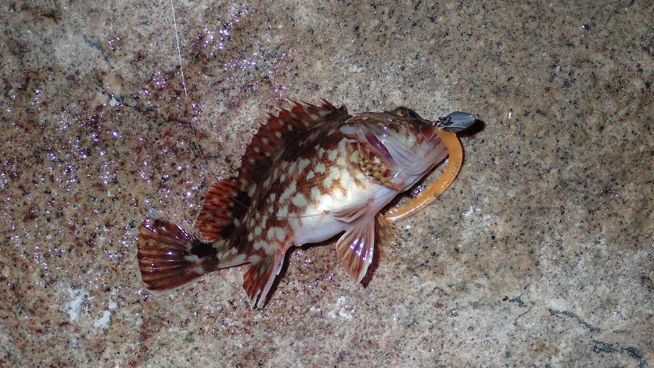 カサゴであれば一度潜られるとほとんどキャッチ出来ませんが、アコウは積極的に走るので大きさの割に釣り上げるのはそれほど難しくありません。