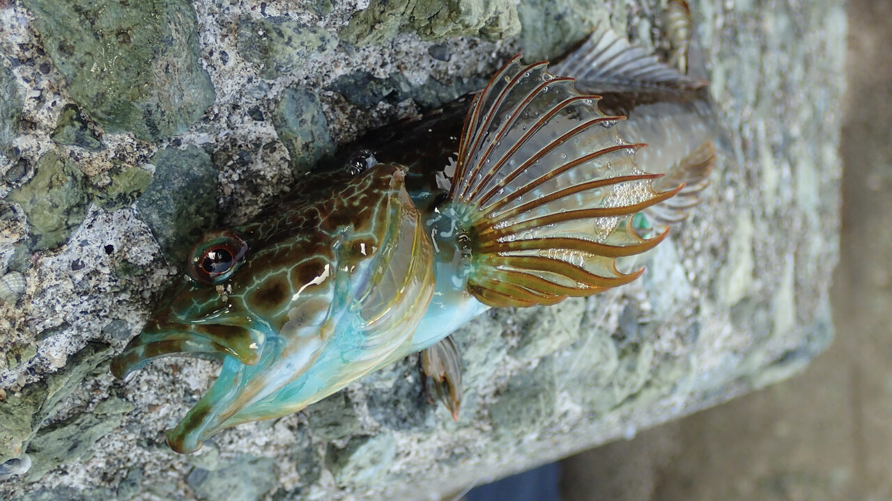 この魚はよく釣れるイソベラとは少し種類が違うようです。