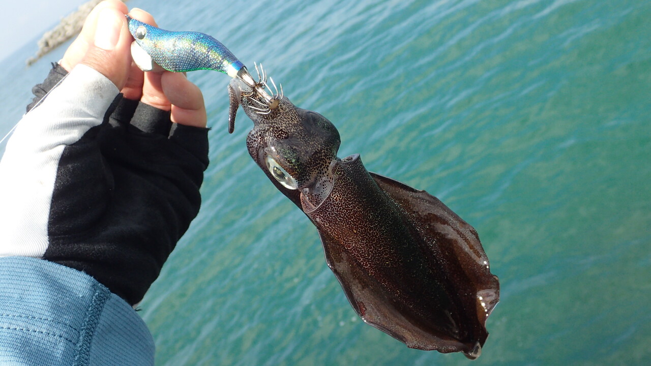 この時期にしては良いサイズのアオリイカがヒットしました。