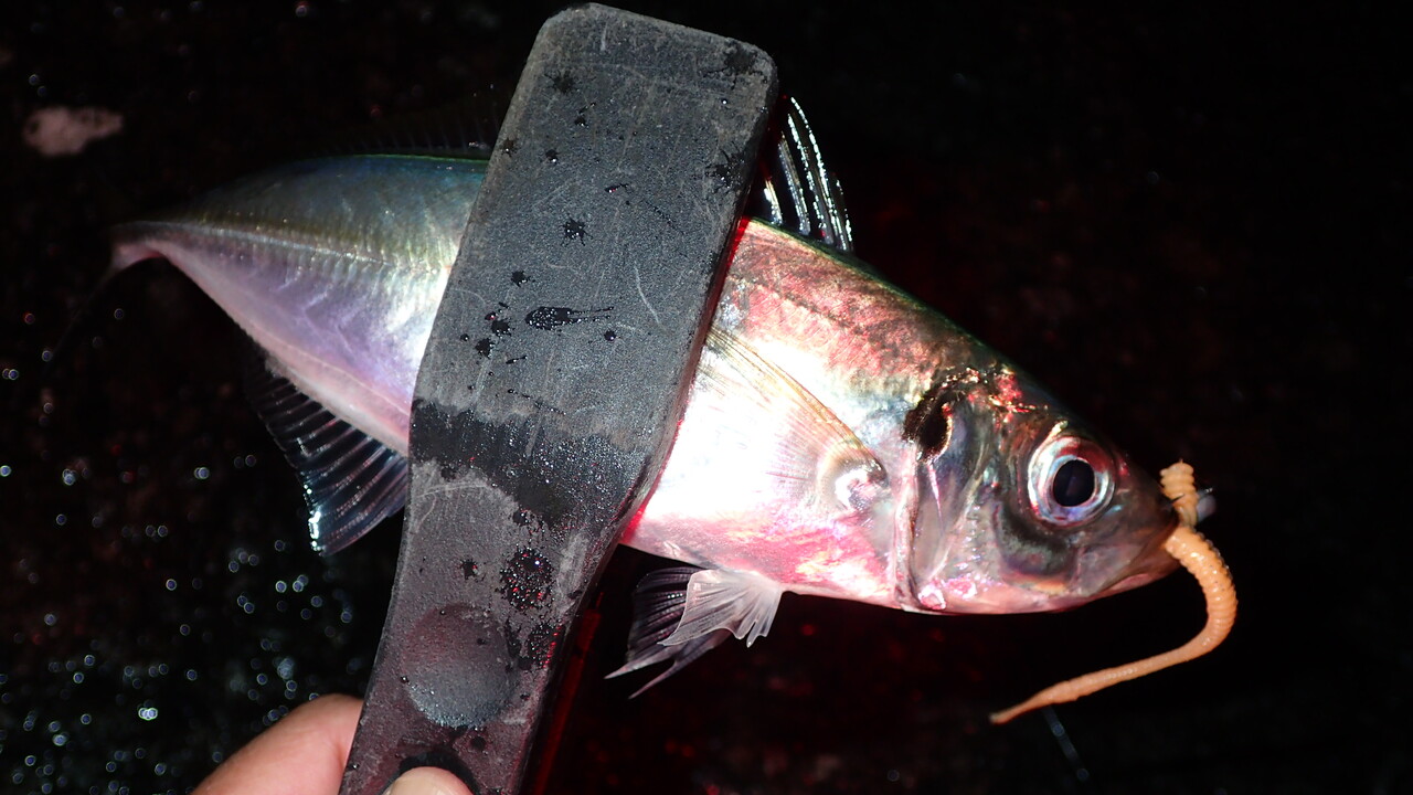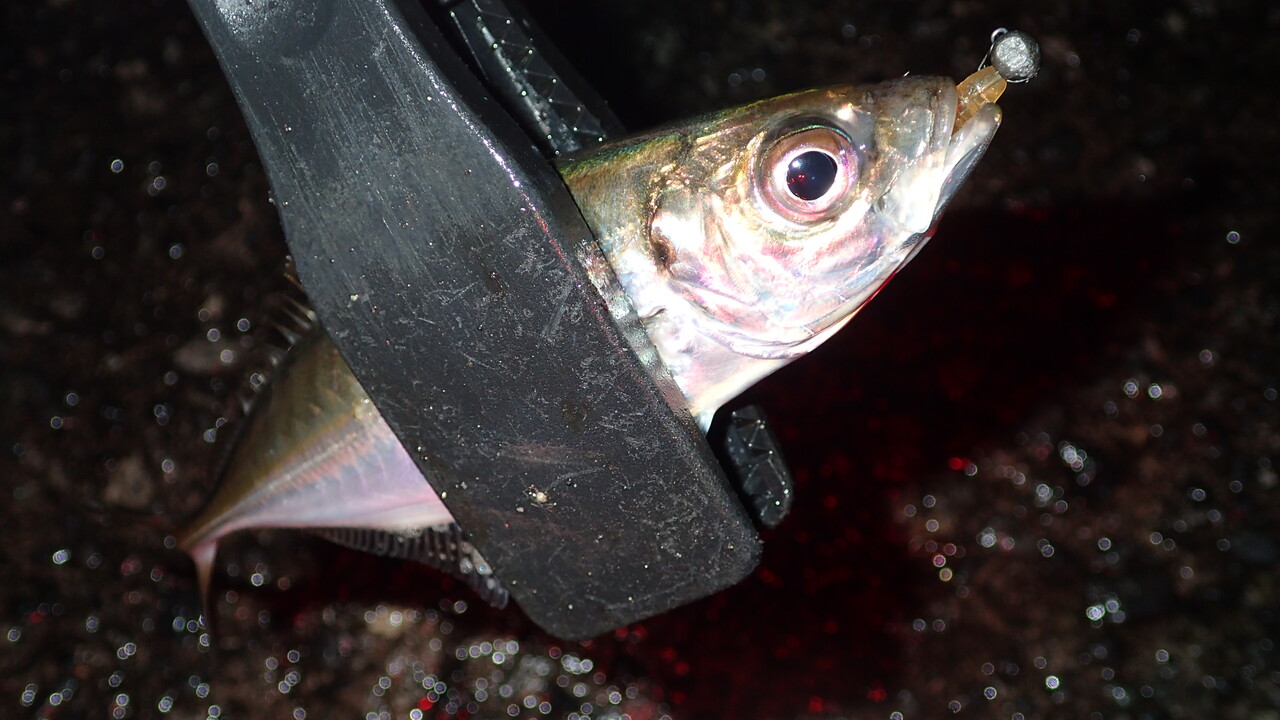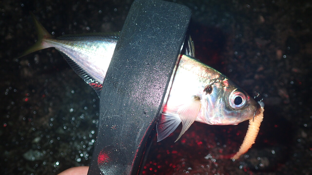 10センチ程度のアジがたくさんいる中で、少しマシな15センチ程度のアジがギリギリヒットしてくれた感じでした。