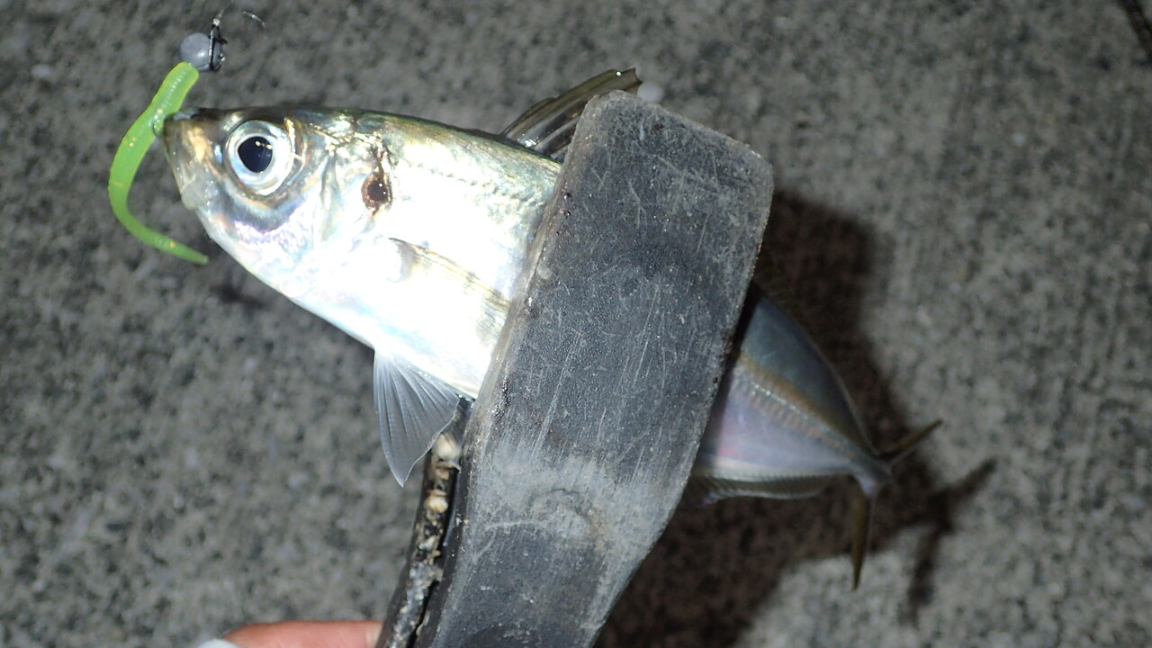夕方からスタートし、ケンサキイカが出現するまではアジを釣って暇つぶしをする事にしました。