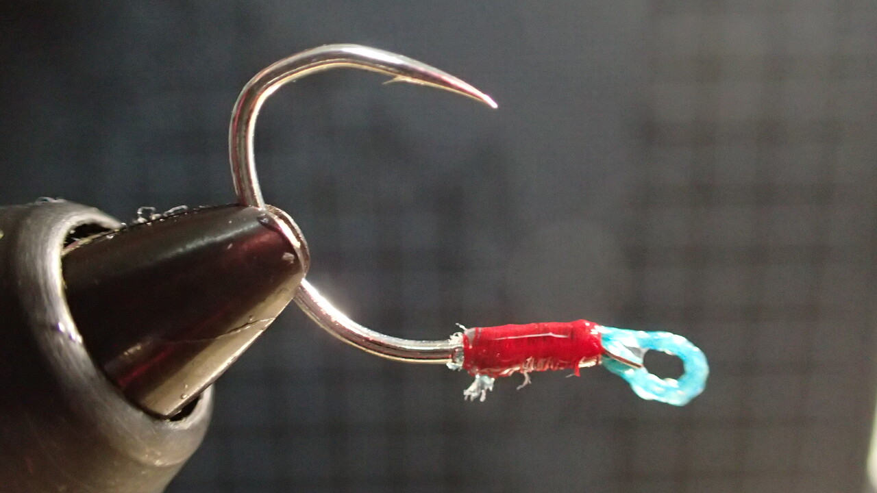 同じようにドライバーの軸を利用しますが、ブレードの絡みを防止するためにオモリとアイの距離は長めに作ると良いです。