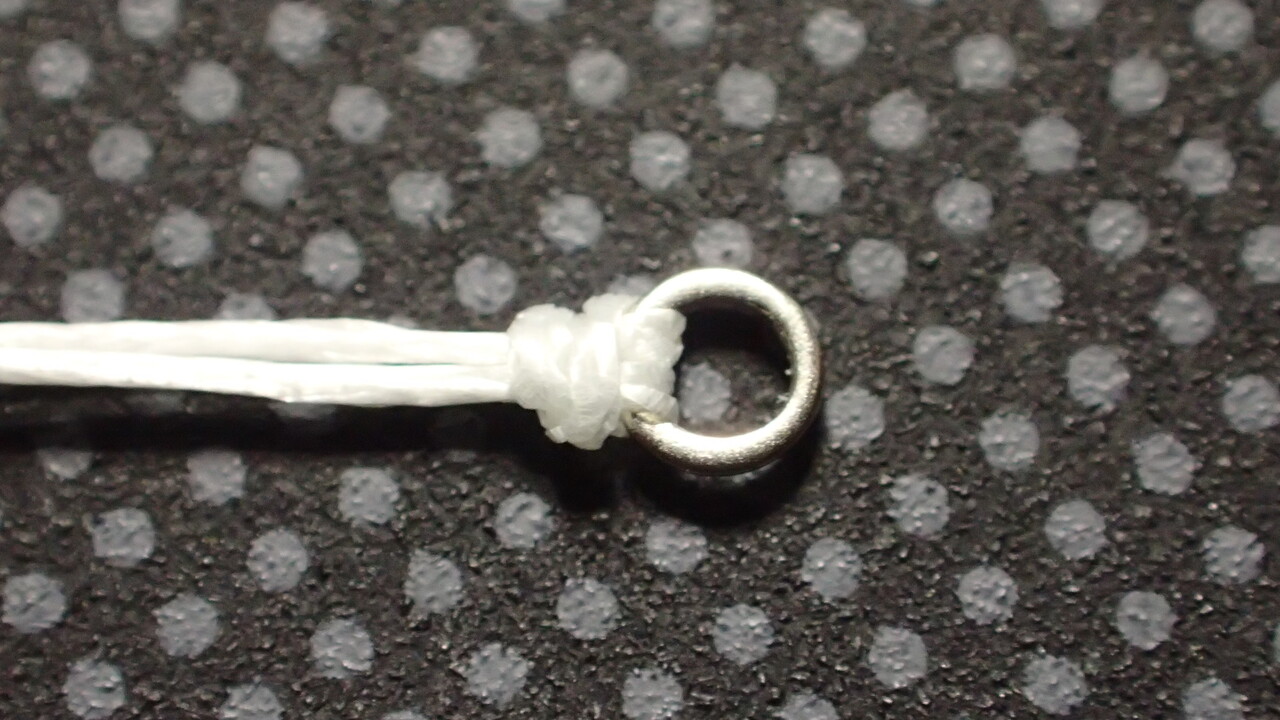 もしくは、フライフィッシングで使うバッキングライン20lb(こちらの方が耐摩耗性は上、しなやかさは下、ちょっと太い)。