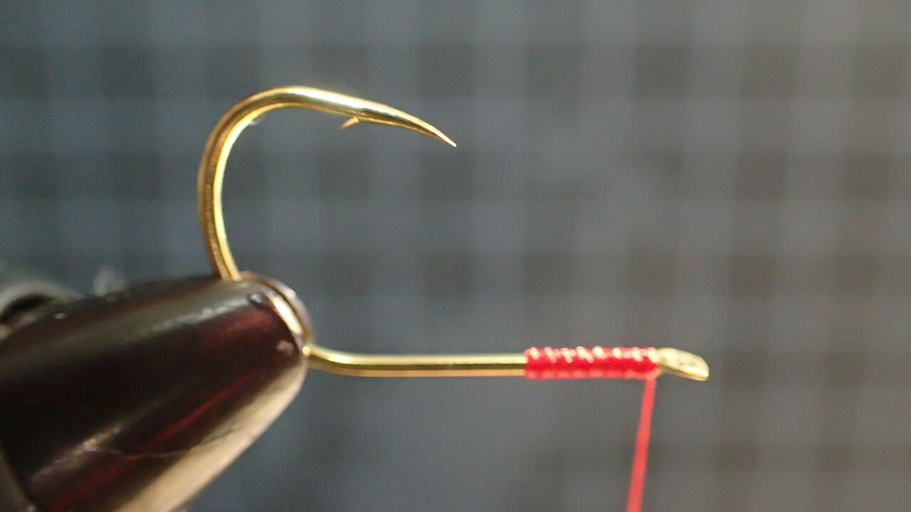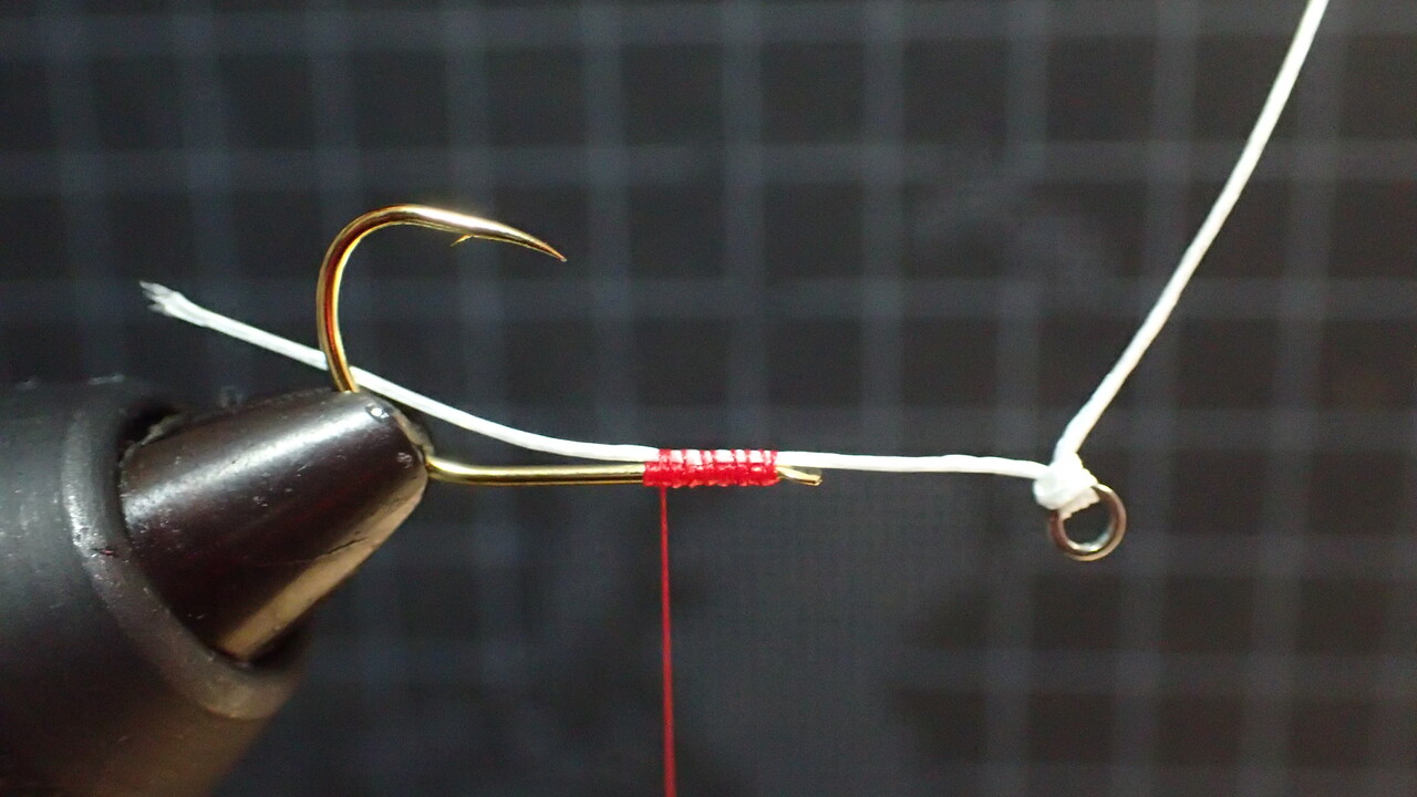 巻き留める時にアシストラインの長さとフックの向きをしっかりと調節します。