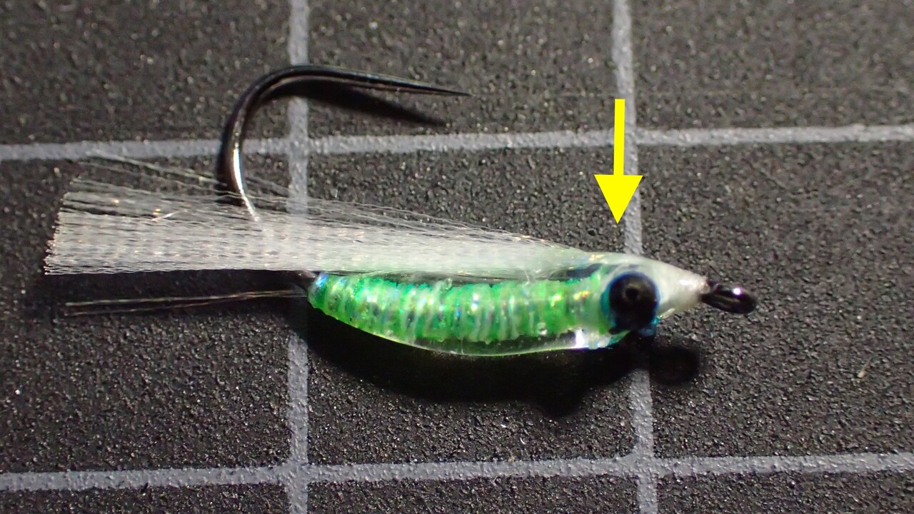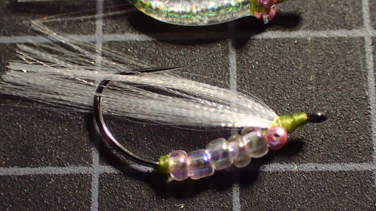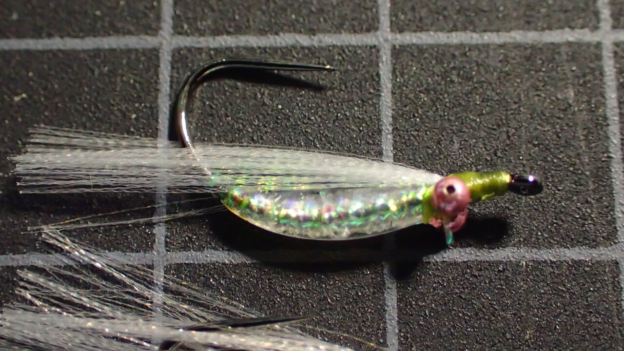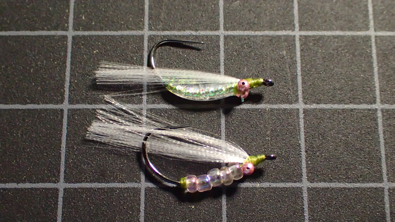 どちらもシラスを偏食している時に良く釣れるフライなのですが、特にティンセルを巻いてからレジンで固める方は見た目も美しくオススメです。