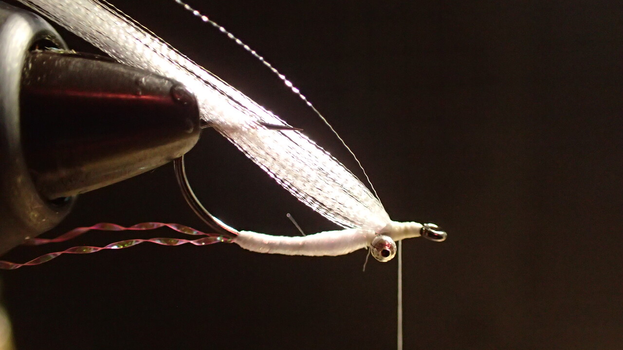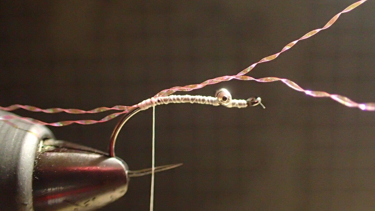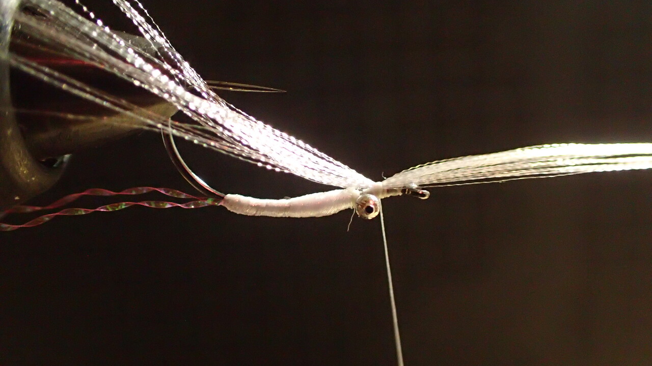 あってもなくても釣果は変わりませんが、ピンクのティセルをテールにしてみます。