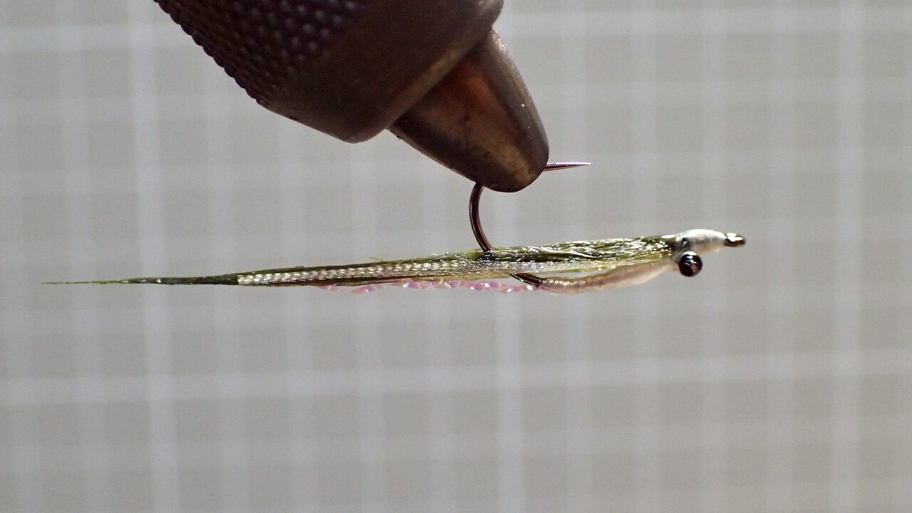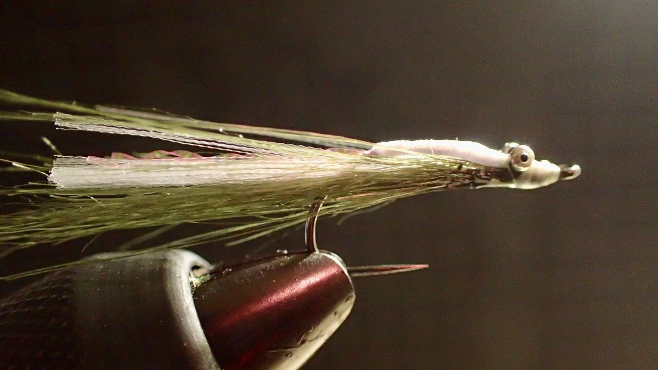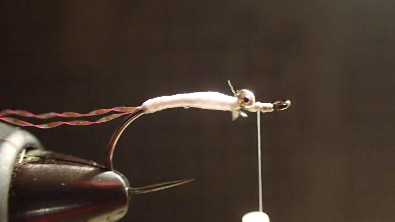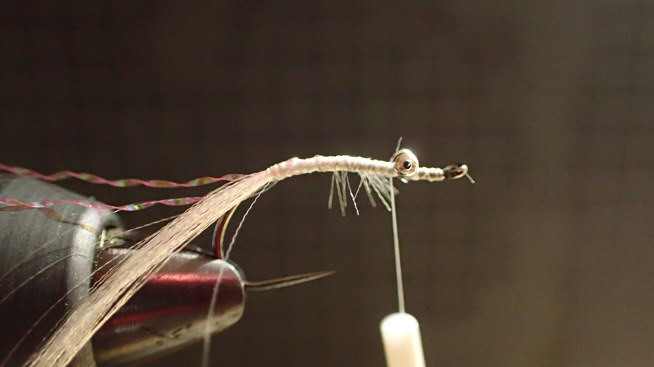 あってもなくても釣果は変わりませんが、ピンクのティセルをテールにしてみます。