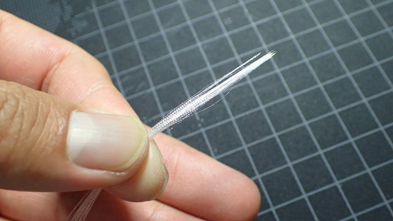 取り出した繊維はばらけないようにしっかり持ってタイイングに使用します。