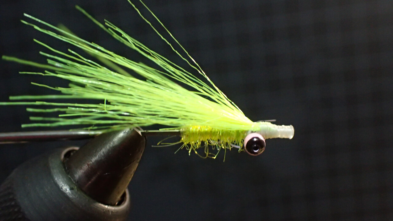 ちなみに、チューブフライの場合はクラウザーミノー(クレイジーチャーリー)形状にこだわる必要はないのですが、目玉を付けると同時に姿勢を安定させられるため、便利だからと言う理由でこのフライパターンを選んでいます。
