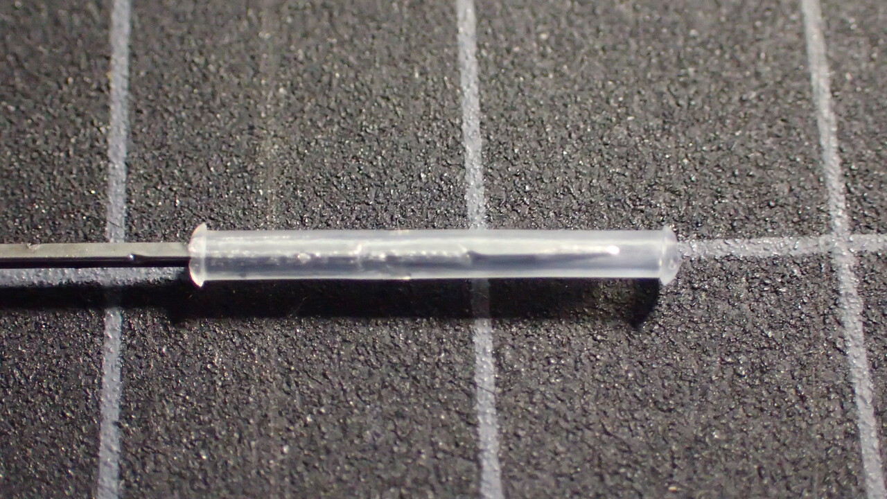 0.6mmパイプだと結構頑張らないといけませんが、怪我に気を付けながらニードルにパイプを差し込んでいきます。
