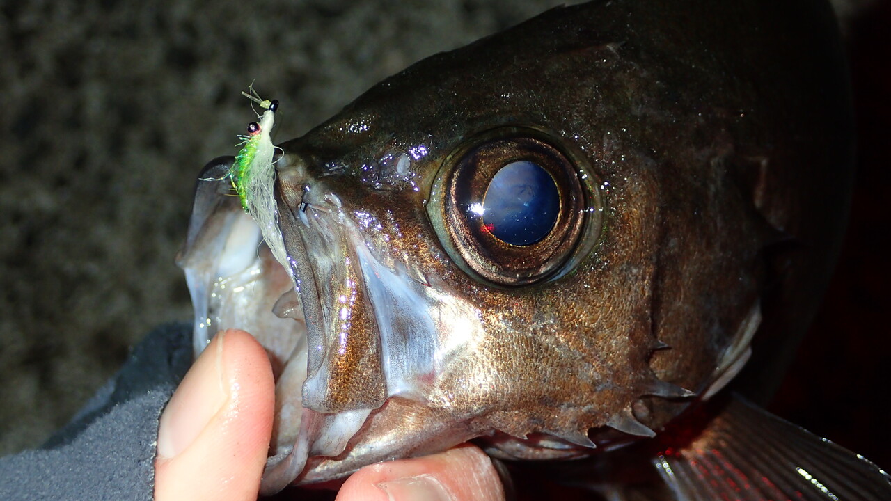 この場所は、フライを使うと良型メバルが結構釣れます。