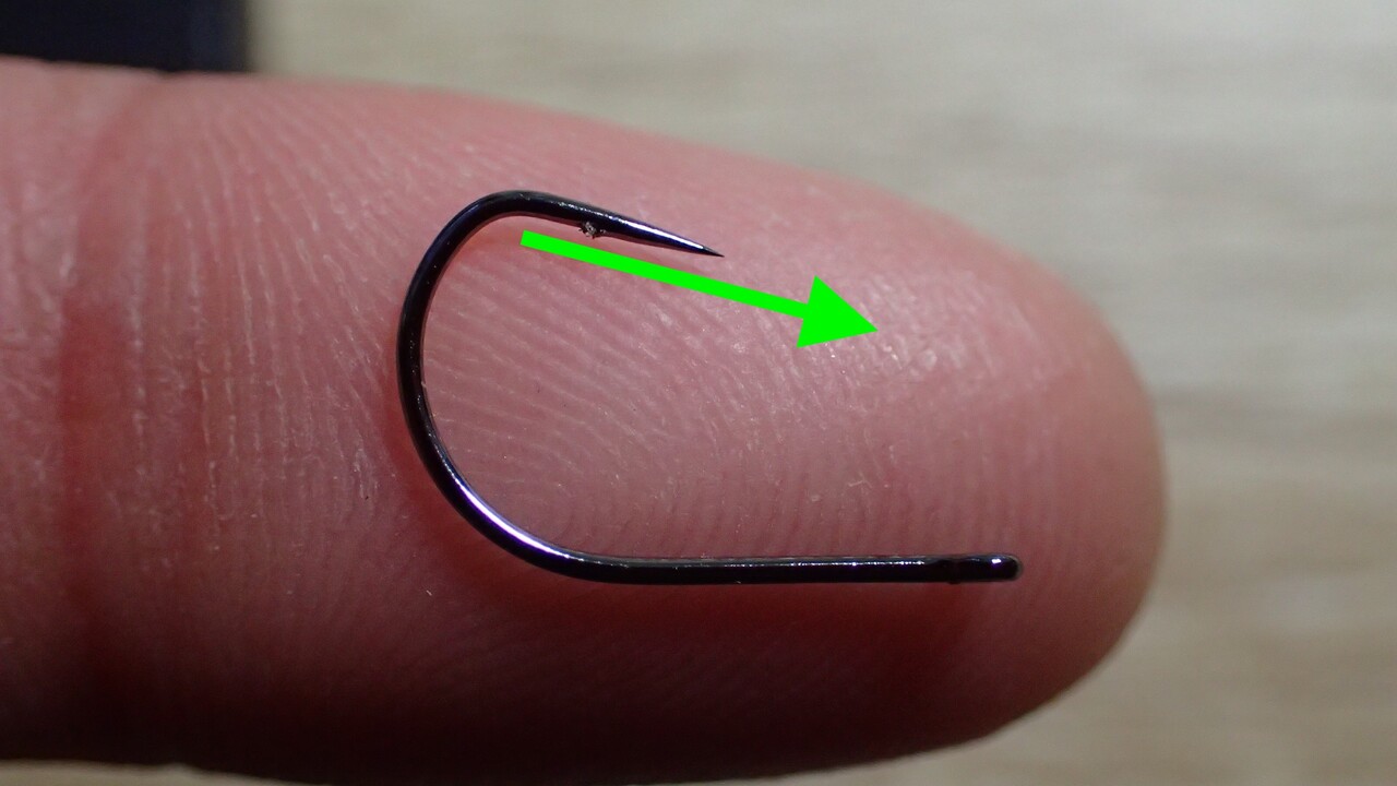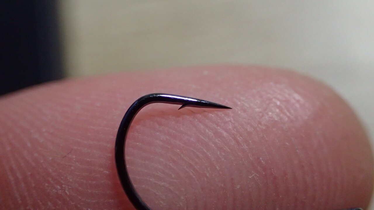 それでも小さいですが(フライフック10番相当)、このフックは3号より大きなサイズがないので3号を使っています。