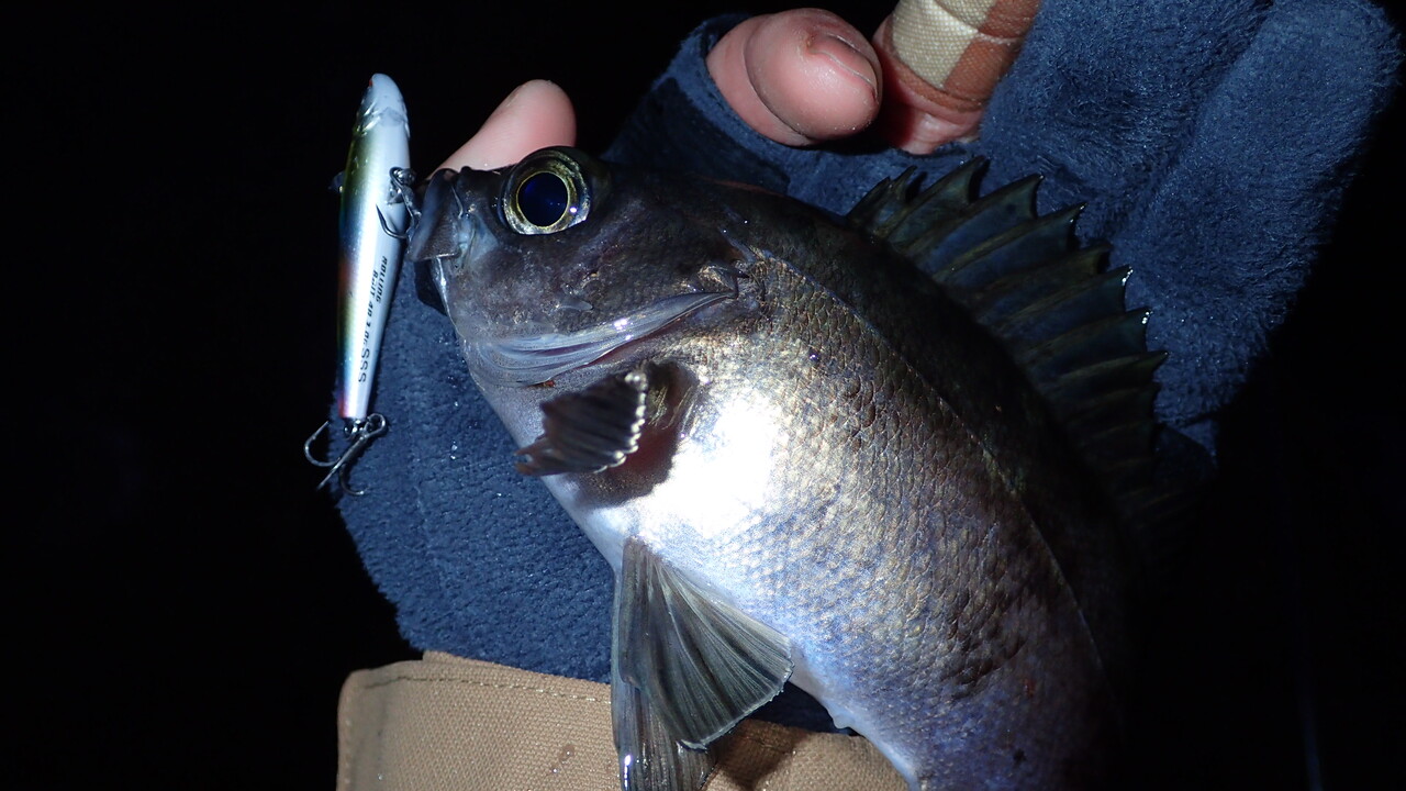 ゴンッと激しいバイトが、いかにもマズメの魚という感じです。