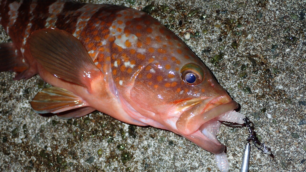 そのカサゴと同じように岩やテトラに隠れながらアコウは生活していますから、カサゴが釣れる場所=アコウが釣れる場所だと考えています。