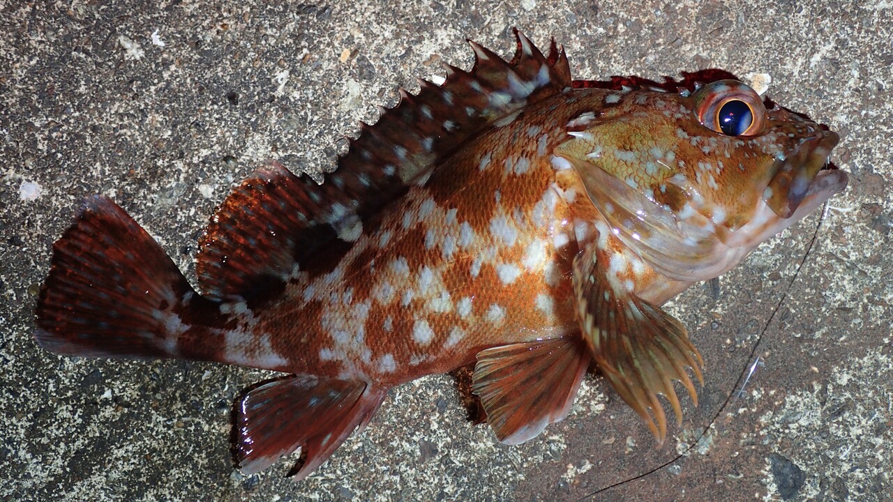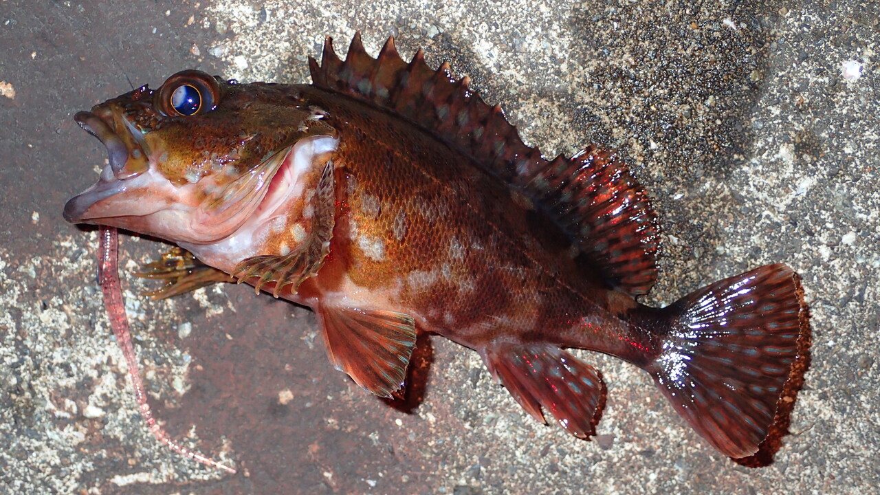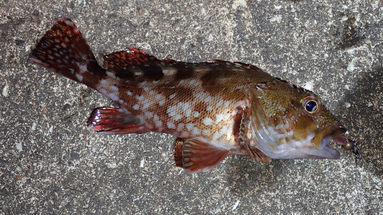 坊主逃れの垂直釣りでもカサゴが少し釣れた程度。