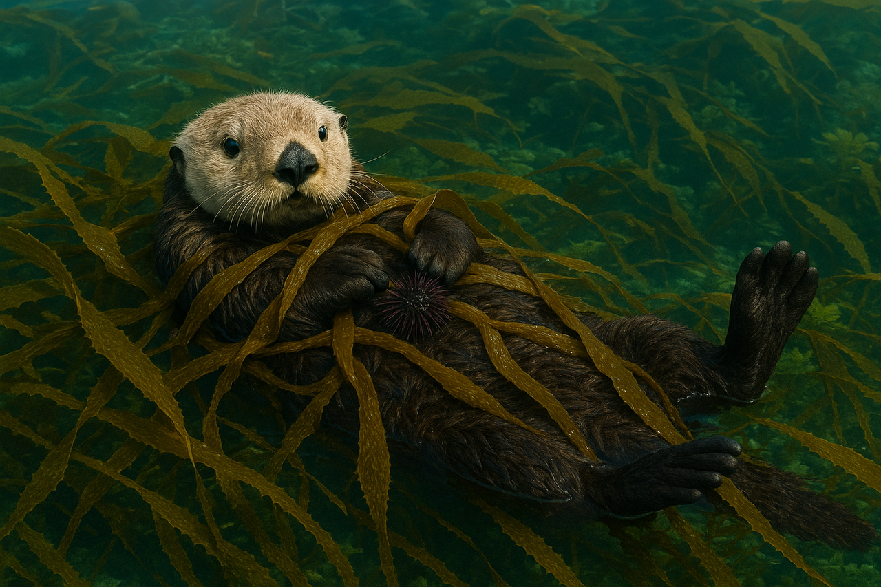 私たちがよく目にする「ラッコが海藻を体に巻き付けてぷかぷかと浮かんで眠る姿」は、実はラッコがいるからこそ実現している光景です。