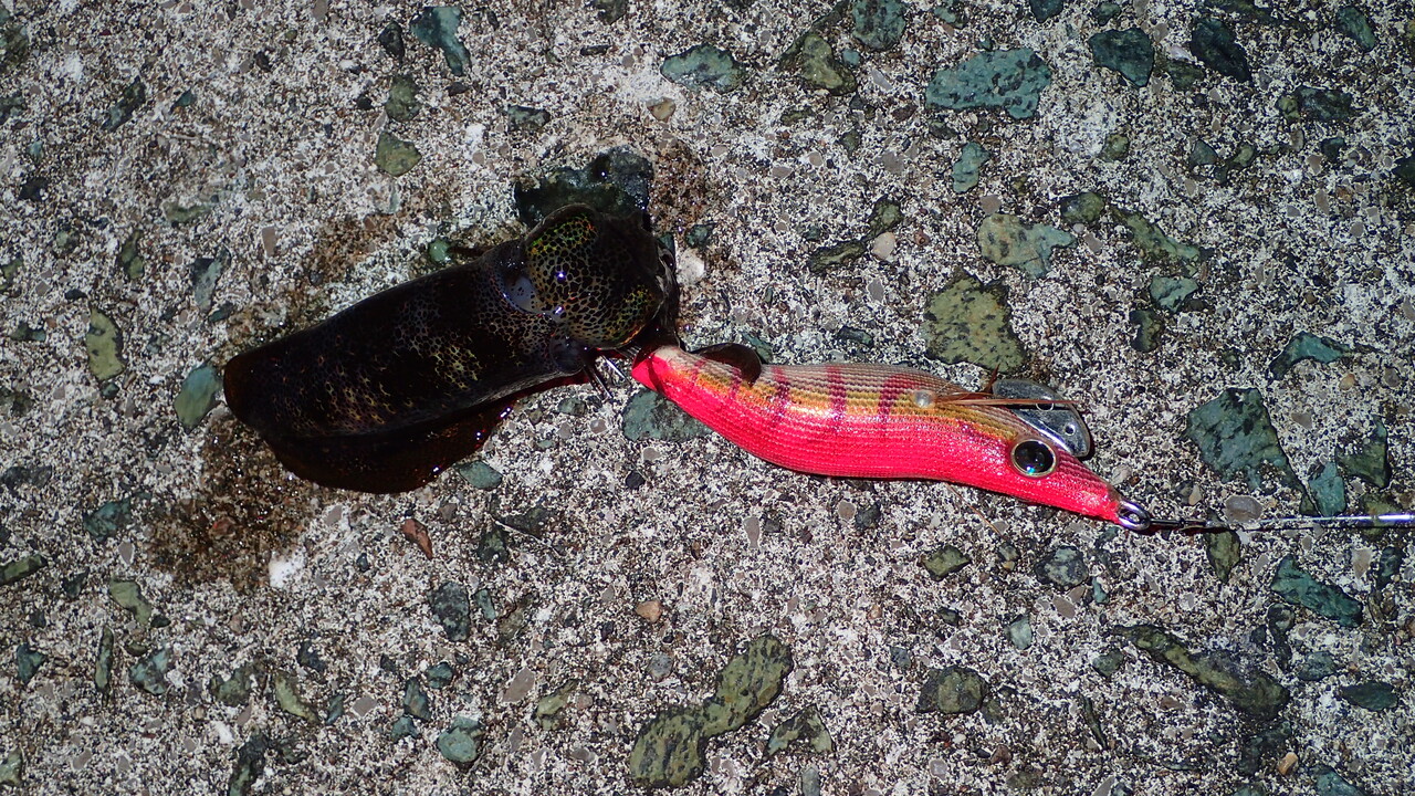 ケンサキイカの調査もついでに行って、極小のアオリイカがヒット。