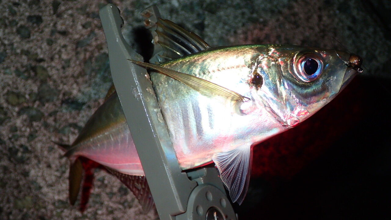 シンカー1.5gを組み合わせ、どの程度のアジが集まっているのか確認します。