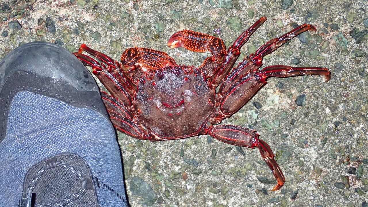 そんな時に熟成アクアをモグモグしていたショウジンガニが登場。