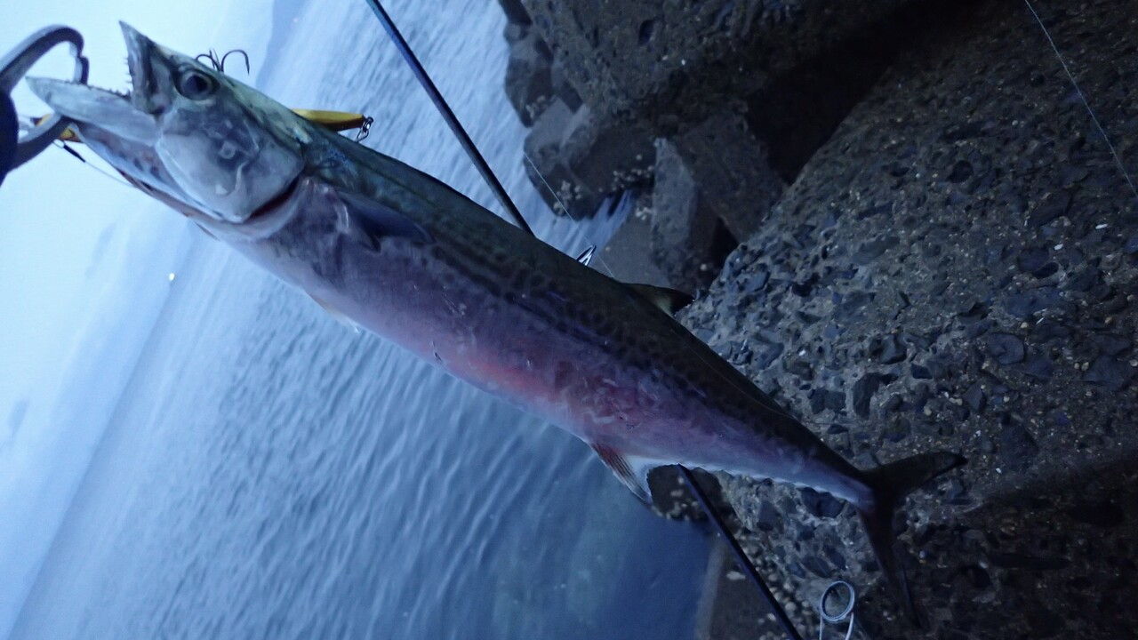 リトリーブ中心に軽いジャークをしてみたり、ジャーキングチューンと同じようにずっとジャークで引いてみたりと、色々と試しながらサワラの回遊を待ちます。