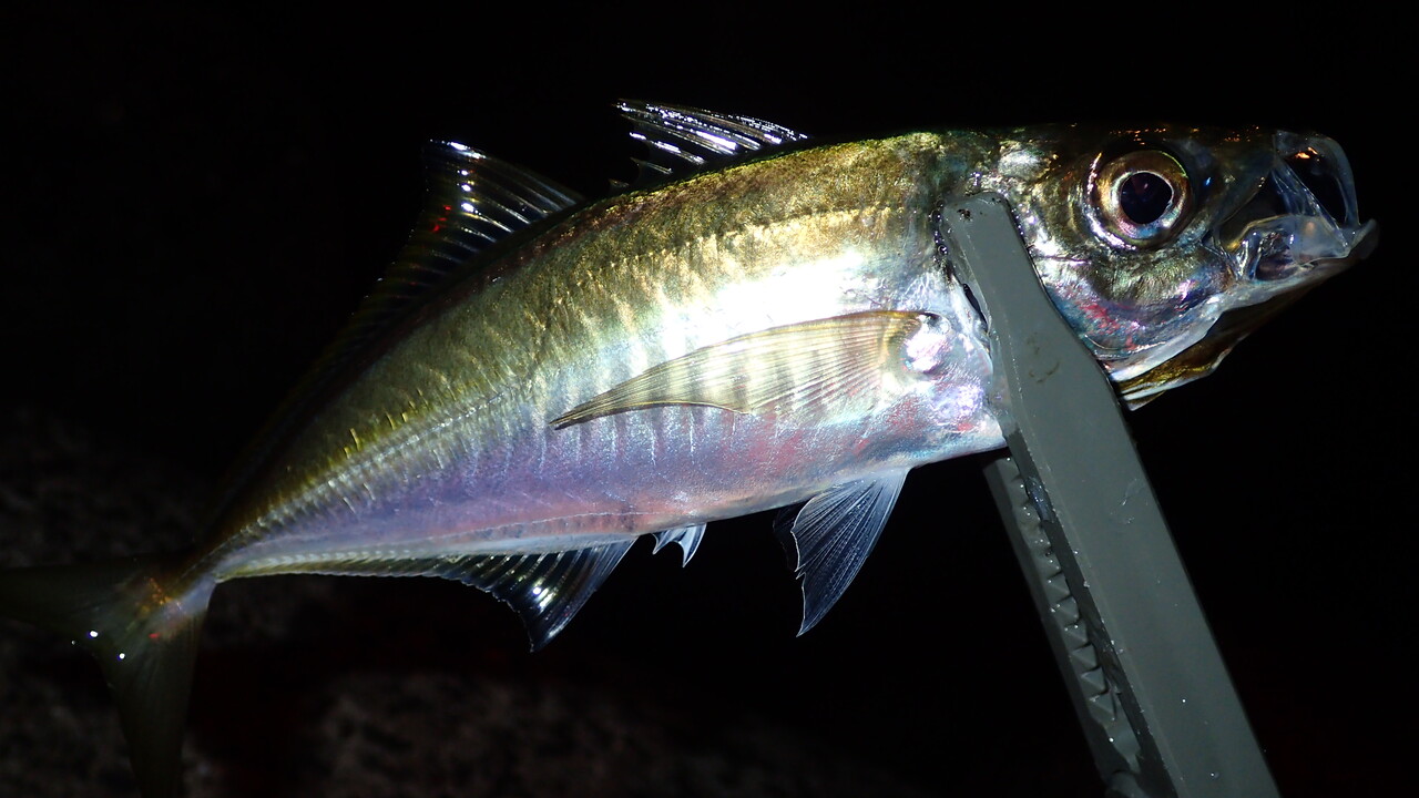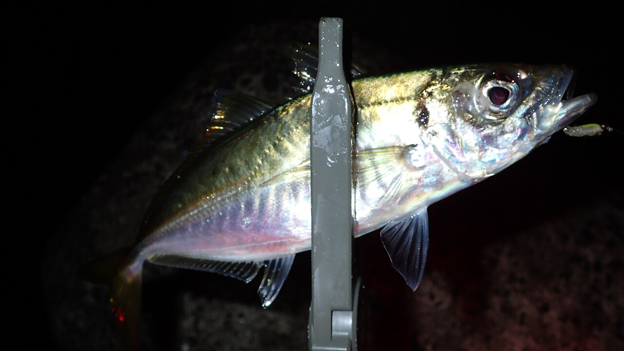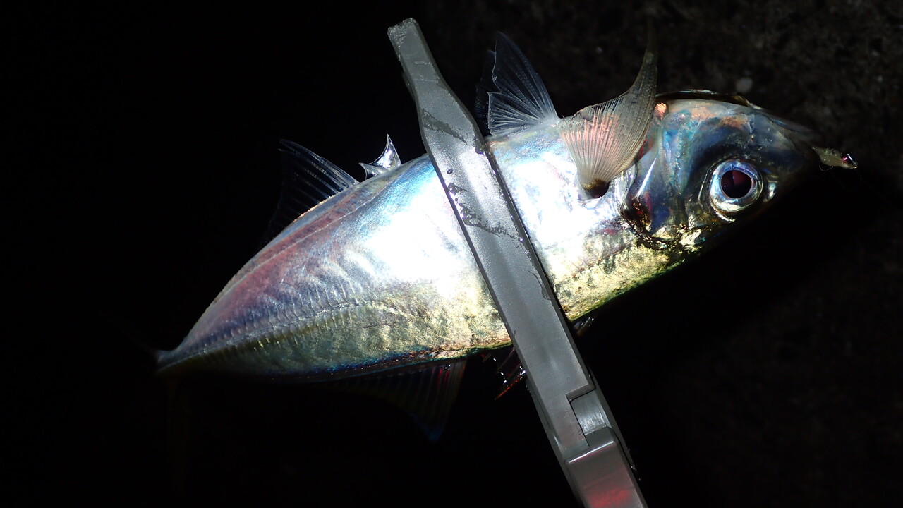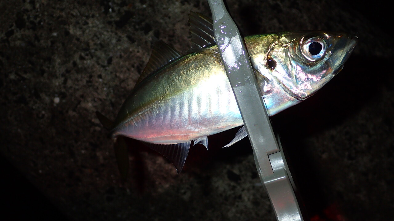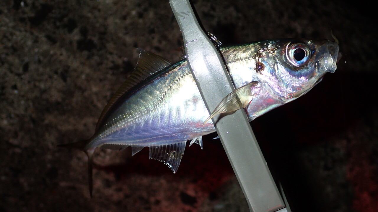 最初にヒットしたのは23センチほどのアジでした。