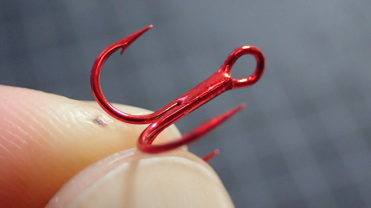 ですので、私はカエシを潰した上で針をほんの少しだけ内側へ曲げて使用しています。