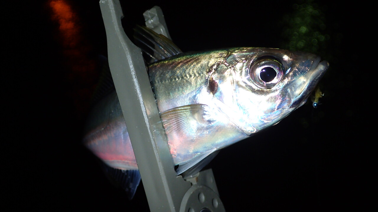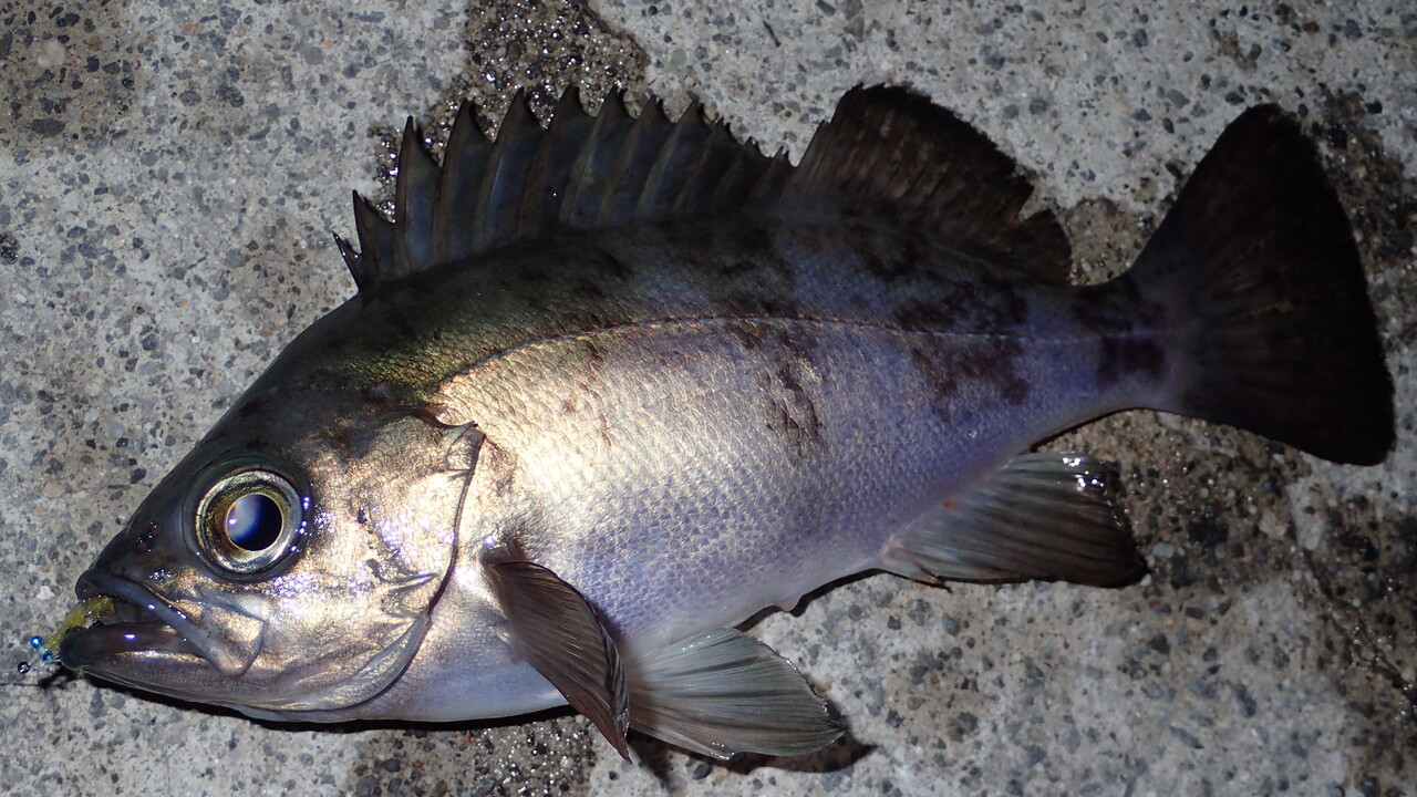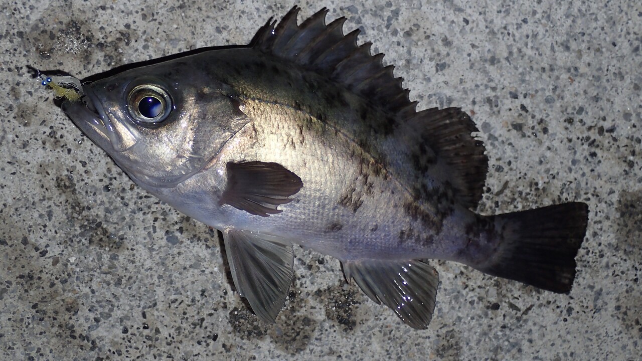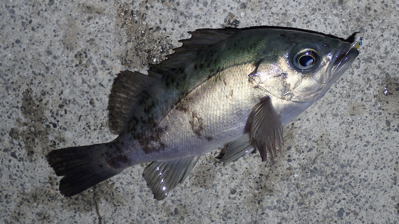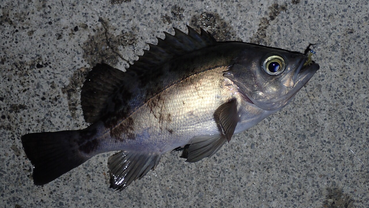 常夜灯に照らされた水面を観察すると、小さなメバルの群れを確認。
