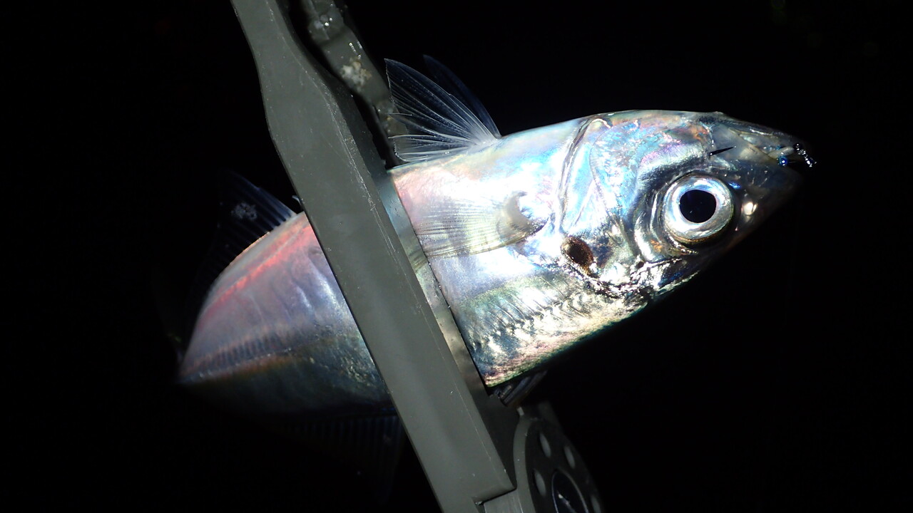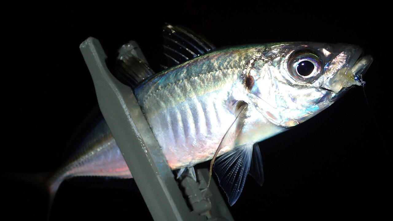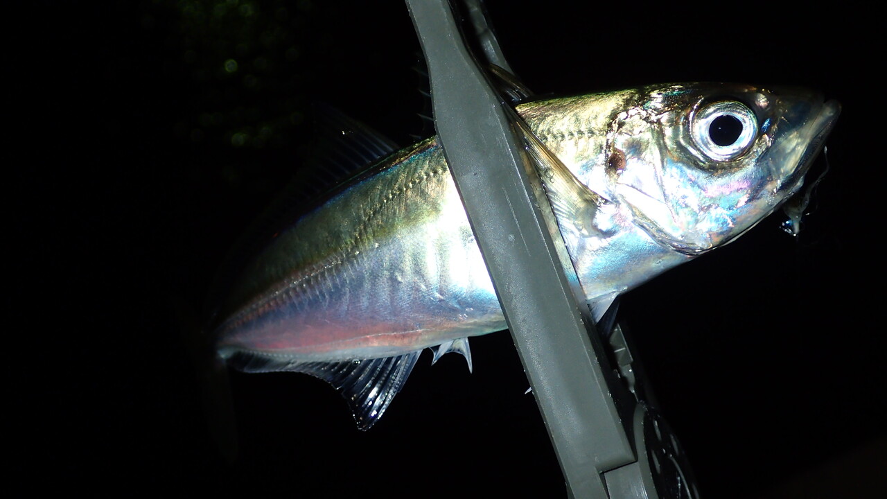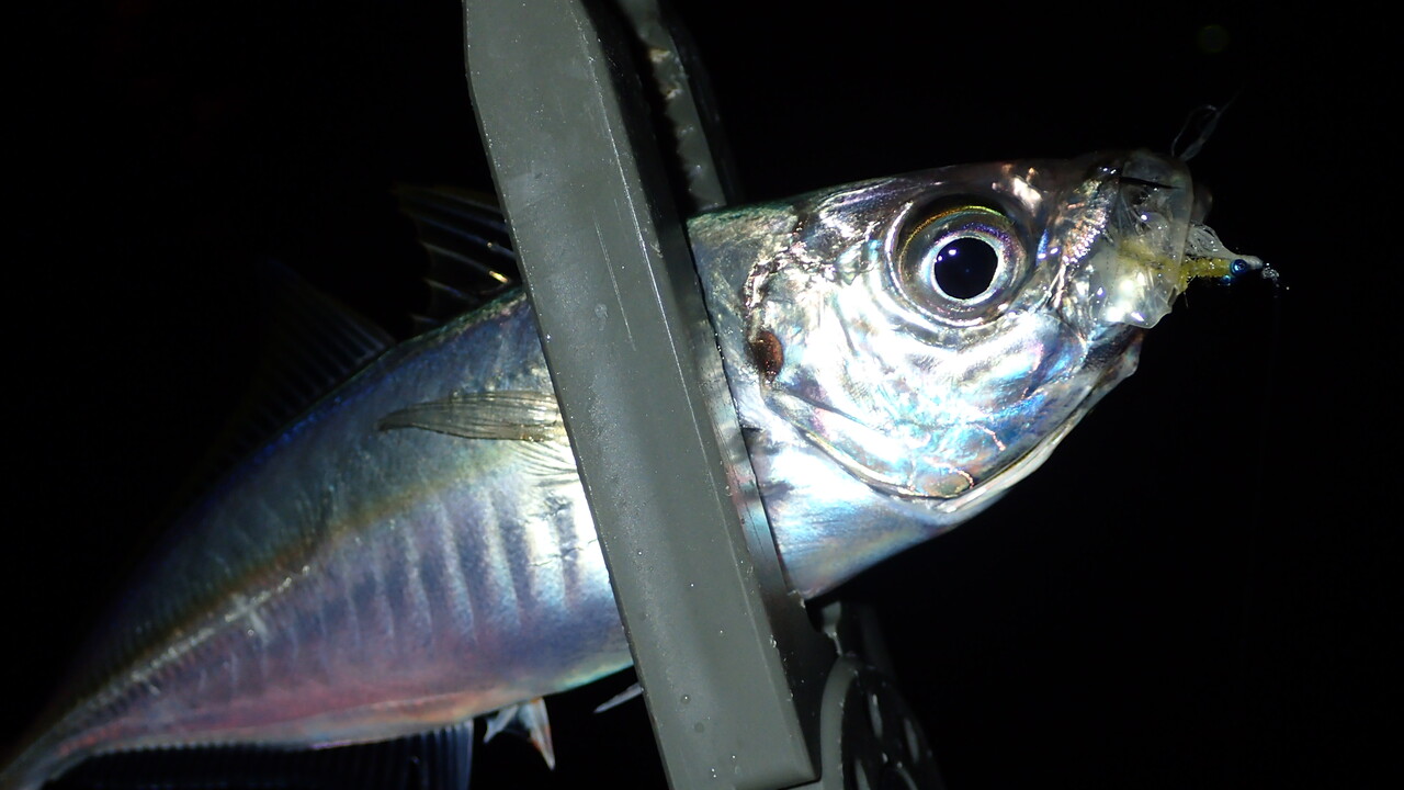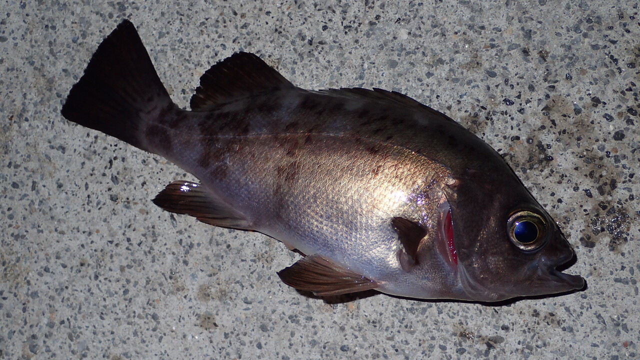 常夜灯に照らされた水面を観察すると、小さなメバルの群れを確認。