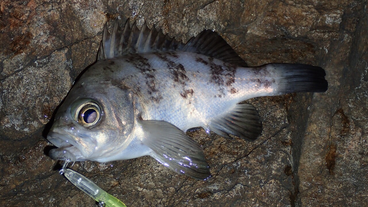 と思っていると、テトラギリギリコースで21センチほどのクロメバルがヒットしました。