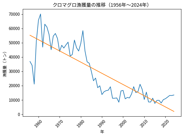 グラフの通り、クロマグロの漁獲量は確かに近年僅かに持ち直していますが、ピークであった1960年代と比較すると依然として大きく下回る水準にとどまっています。